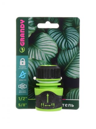 Коннектор для шланга 1/2"-5/8", быстросъемный, автостоп, с замком, Grandy, JS-3051