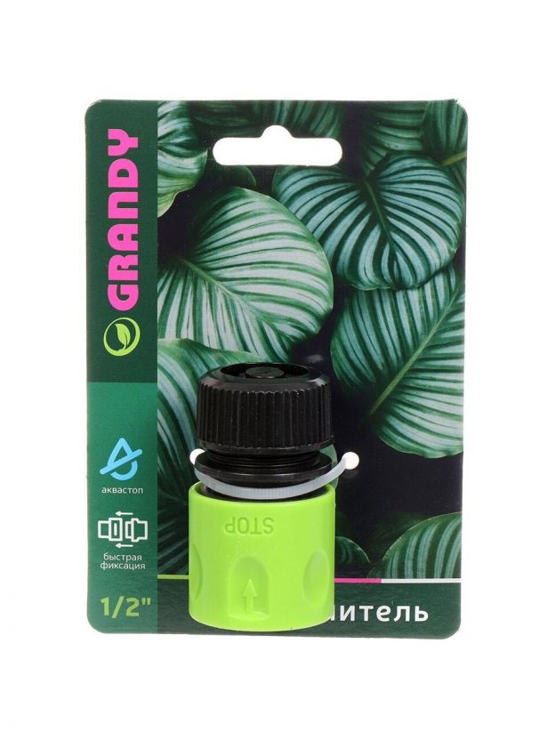 Коннектор для шланга 1/2'', быстросъемный, автостоп, Grandy, JS-325