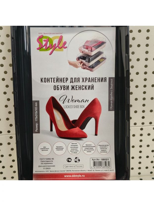 Коробка изготовлена из прозрачного пластика. Изделие отлично подходит для длительного сезонного хранения обуви, обеспечивая сохранность ее внешнего вида и формы. Контейнер не деформируется, не пропускает влагу и пыль. Прозрачная поверхность позволяет быстро найти нужную пару обуви. Использование коробок способствует экономии места и рациональной организации пространства.