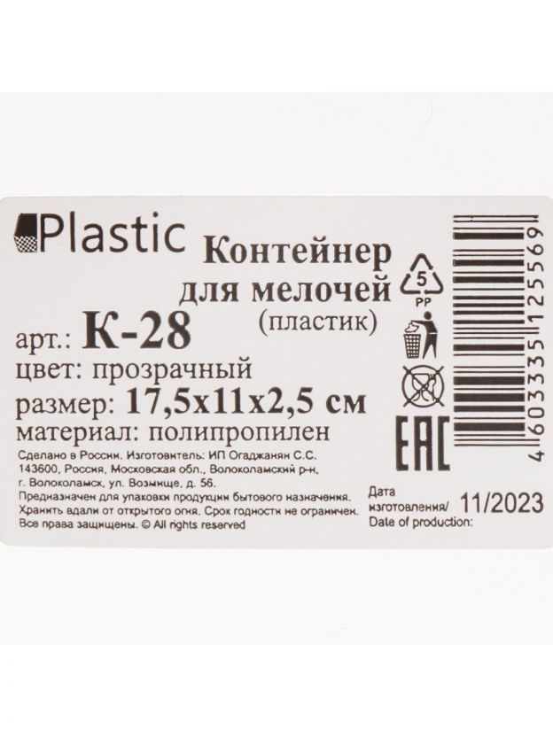 Контейнер для мелочей из прозрачного пластика — идеальное решение для хранения и организации аксессуаров, фурнитуры, канцелярии и других мелких предметов. Компактные размеры 17.5х11х2.5 см позволяют удобно разместить контейнер в ящике, на полке или взять с собой. Прозрачный корпус обеспечивает быстрый обзор содержимого, а 7 секций с 4 ячейками в каждой позволяют легко сортировать вещи. Экономия времени и порядка в доме — ключевая выгода покупки.
