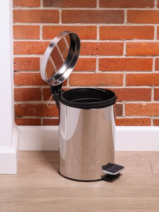 Стильный контейнер для мусора из хромированного металла 8 л с педалью: компактное решение для чистоты дома и офиса без лишних хлопот.
