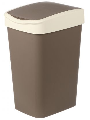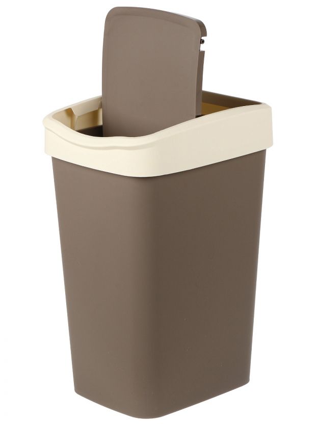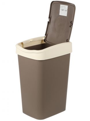 Контейнер для мусора пластик, 35 л, прямоугольный, с крышкой, шоколад, слоновая кость, Violet, Tandem, 843522