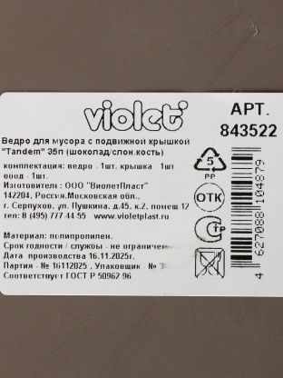 Выбирайте контейнер для мусора Violet Tandem 35 л — закажите онлайн с быстрой доставкой и убедитесь в удобстве и надежности. Сделайте уборку проще!