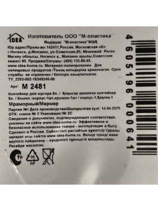 Контейнер для мусора пластик, 8 л, прямоугольный, плавающая крышка, мрамор, Idea, М2481
