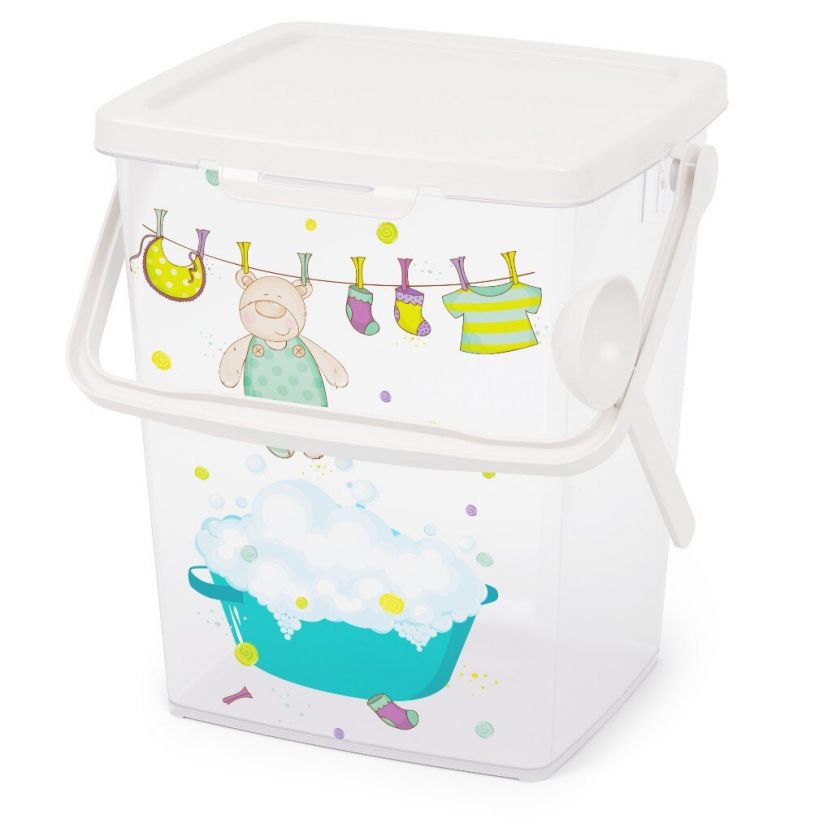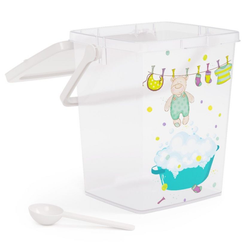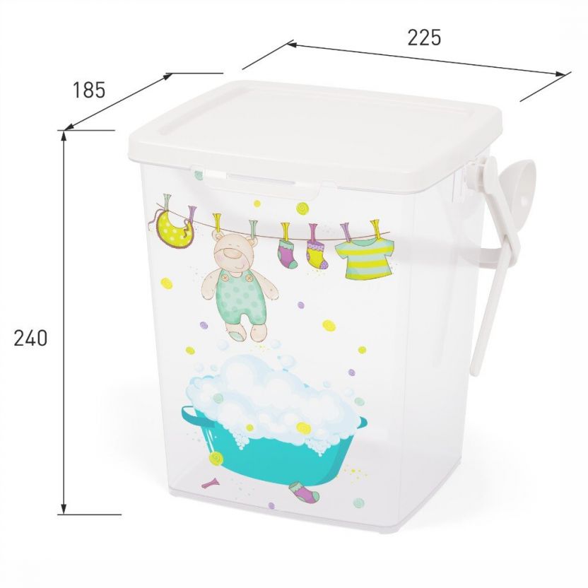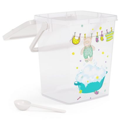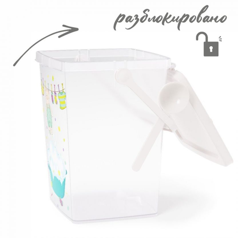 Если в качестве моющего средства для стирки Вы предпочитаете порошок, специальный контейнер станет для Вас полезным приобретением. Использовать контейнер для стирального порошка намного удобнее, чем хранить его в пакете: порошок удобно забирать мерной ложкой, он не просыпется через щели, контейнер устойчиво стоит на основании.