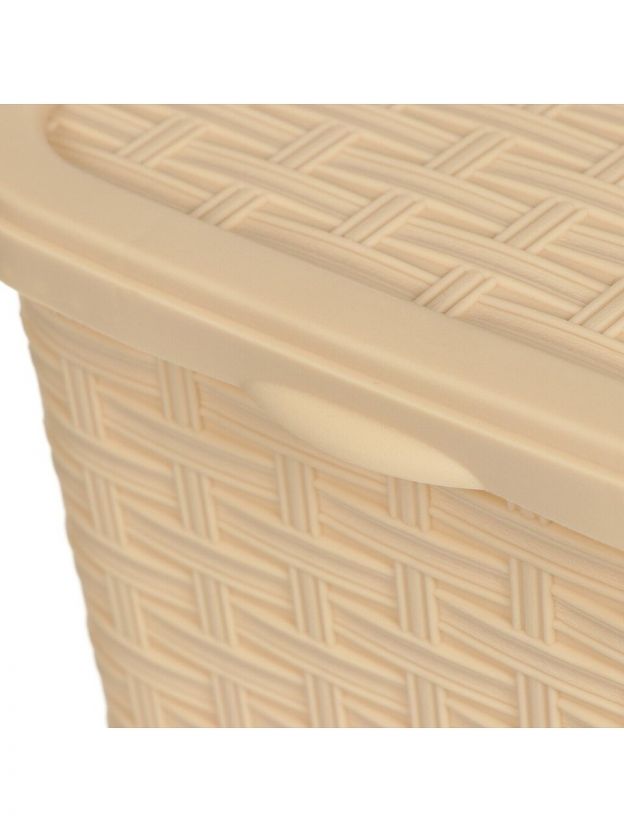 Контейнер для стирального порошка изготовлен из качественного пластика. Сверху он закрывается надежной откидной крышкой. Контейнер очень вместительный и не позволит просочиться влаге. Стильный дизайн изделия притягивает взгляд и прекрасно подойдет к интерьеру ванной комнаты.