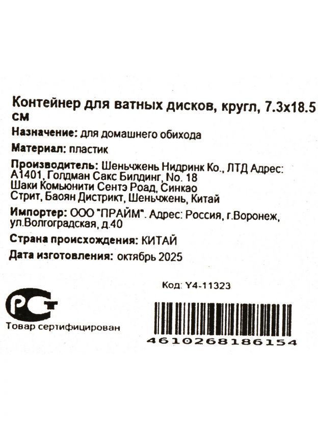 Закажите контейнер для ватных дисков Y4-11323 по выгодной цене — быстрое оформление заказа, гарантия качества и быстрая доставка. Сделайте хранение удобным!
