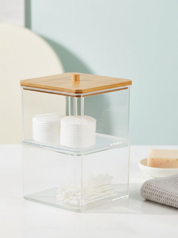 - Двойная секция — удобно разделять ватные диски и палочки, всё под рукой