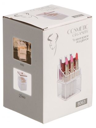 Размер контейнера — 9.5х9х16 см, что позволяет компактно разместить его в ванной или на косметическом столике.
