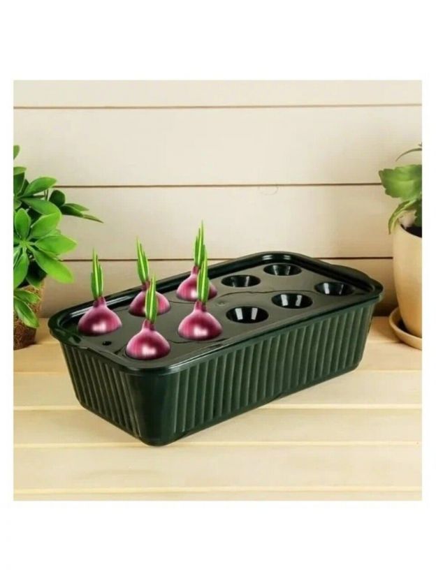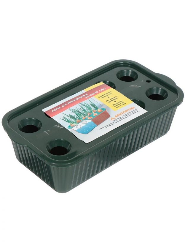 Лоток для выращивания зелёного лука Альтернатива М6715 очень прост в использовании. Налейте воды в емкость, а затем посадите луковицы в ячейки. Они находятся в специальной крышке, на которой могут уместиться 10 луковиц. В воде будут находиться лишь корни, а сами луковицы останутся сухими, поэтому они не будут гнить, портиться, и в них не заведутся мошки. Сплошная польза и витамины – и все это под рукой прямо у Вас дома.