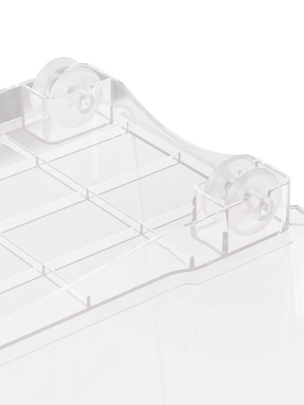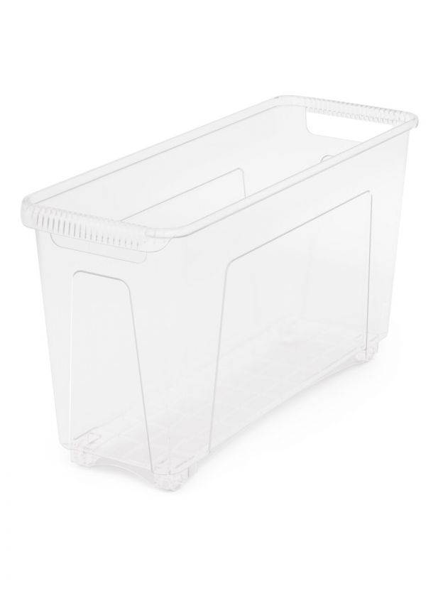 Контейнер имеет габариты 46.5x16.5x25.5 см, объем 10 литров. Подходит для хранения мелких вещей, детского или гостевого постельного белья, одежды, игрушек.