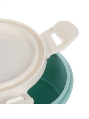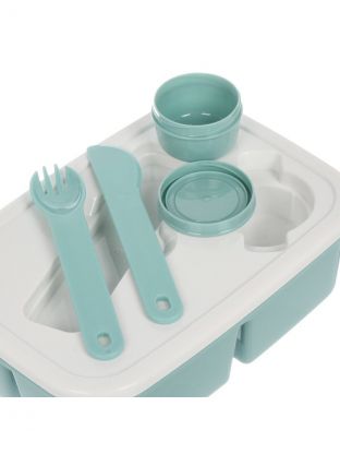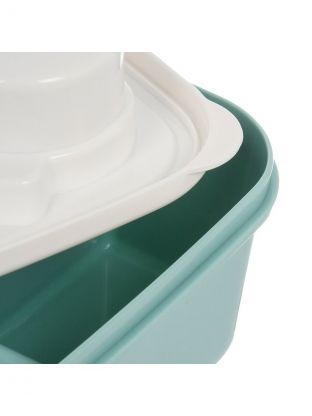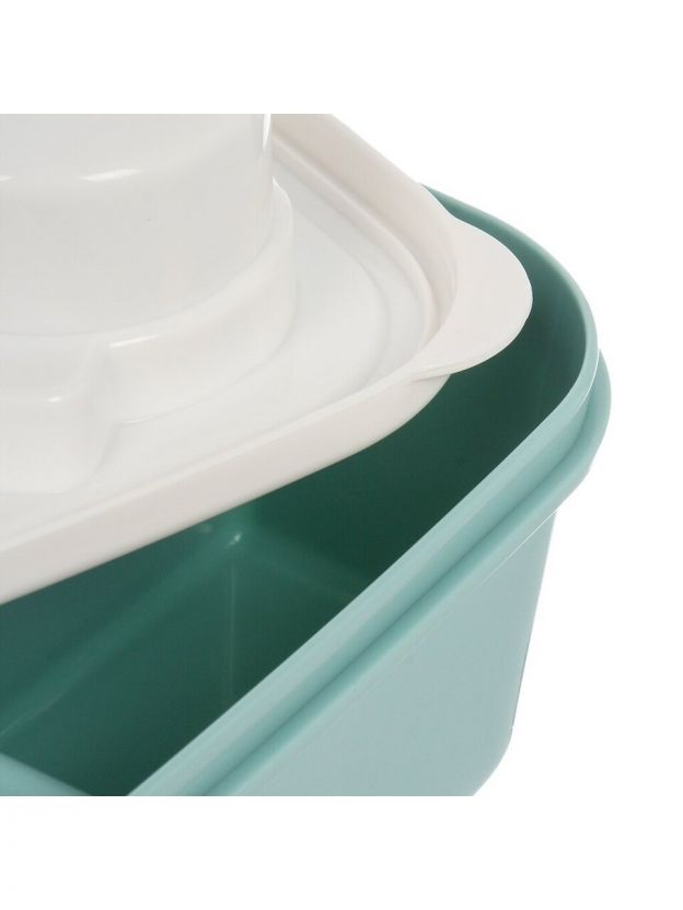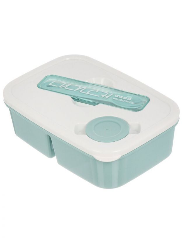 Ланч-бокс пластиковый 20.3х13х7 см с бирюзовой крышкой — современное решение для хранения и транспортировки еды. Благодаря продуманной конструкции с несколькими отделениями и наличию ложки, этот контейнер-органайзер позволяет удобно брать с собой разнообразные блюда: салаты, гарниры, закуски. Уплотнённая крышка на защёлке надёжно предотвращает протекание, а пластик не впитывает запахи, легко моется и подходит для использования в микроволновке.