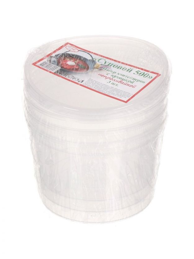 Контейнер одноразовый 3 шт, 500 мл, с крышкой, Тавра, Суповой