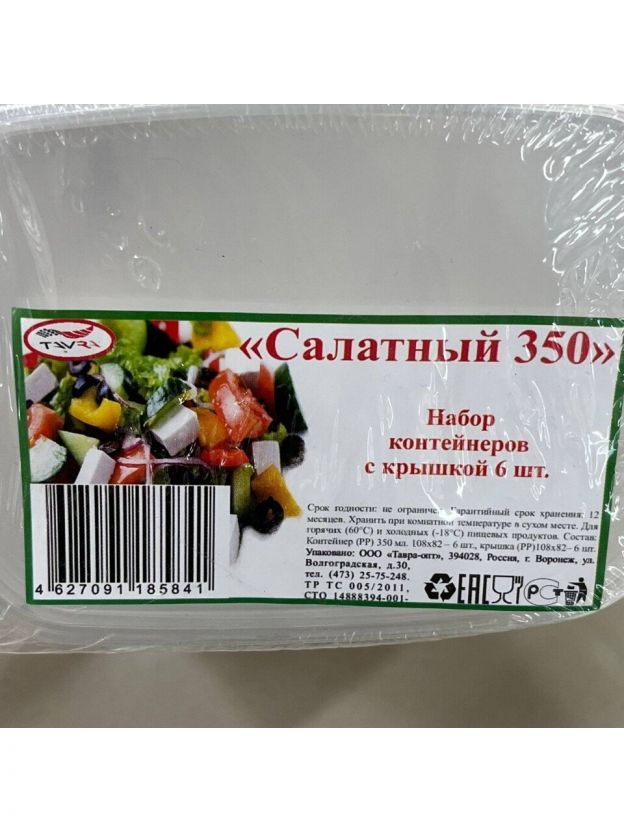 Контейнер одноразовый 6 шт, 350 мл, Тавра, Салатный