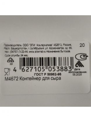 В отличие от стеклянных и металлических аналогов, пластиковый контейнер легче, безопаснее в использовании и не подвержен коррозии. Часто спрашивают, чем отличается этот контейнер от других — он изготовлен из сертифицированного пищевого пластика, не содержит эмалированного покрытия и полностью безопасен для хранения продуктов. Как использовать контейнер для сыра? Просто поместите кусок сыра внутрь, закройте крышкой и уберите в холодильник — сыр останется свежим дольше, а холодильник — чистым и без посторонних запахов.