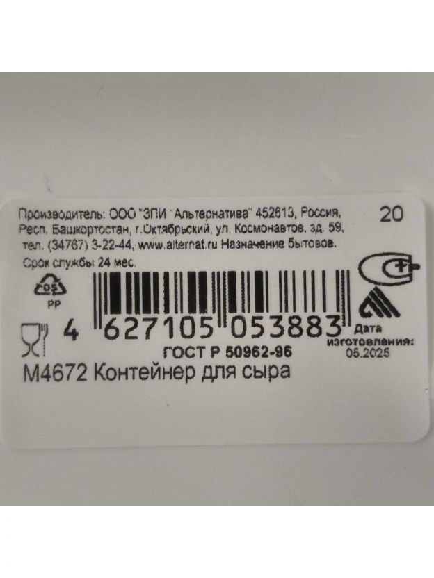 - Оптимальные размеры 19.5x10.5x8 см — подходит для большинства сортов сыра, выполнен из прочного пищевого пластика