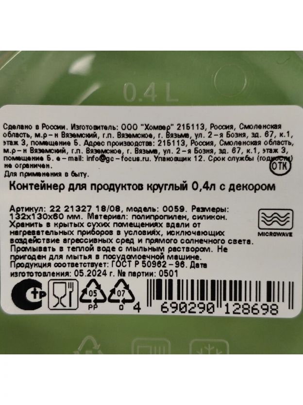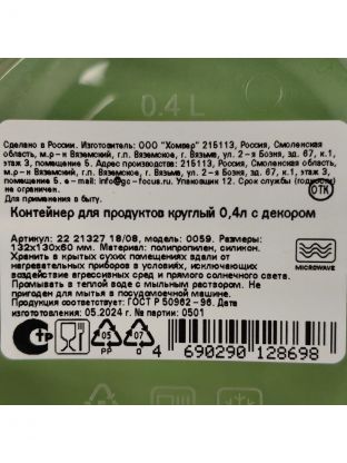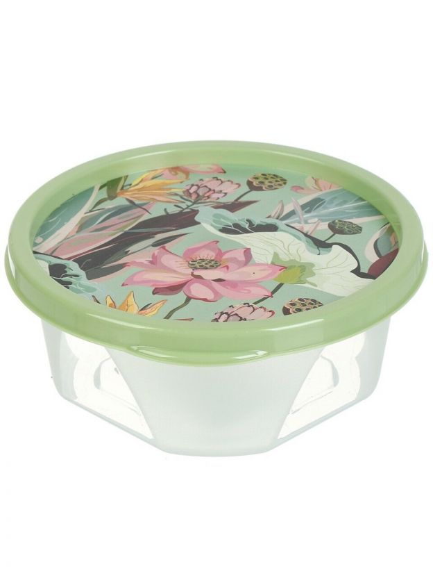 Контейнер круглый Homver Botanica 0.4 л: компактное хранение продуктов, свежесть и герметичность. Идеален для дома, дачи, перекусов и заморозки.
