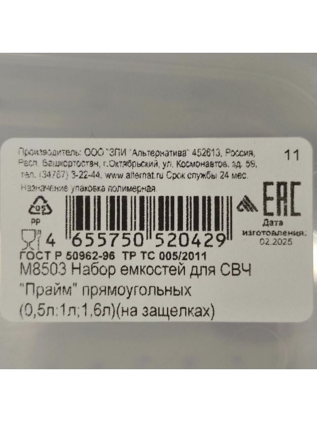 Закажите набор контейнеров Альтернатива Прайм — пользуйтесь выгодной ценой, качеством и быстрой доставкой. Сделайте хранение и транспортировку еды удобными и безопасными.