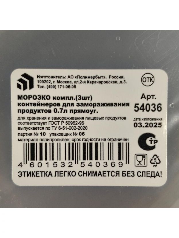 Контейнеры для еды 0.7 л Полимербыт Морозко — набор из 3 прочных пластиковых емкостей для заморозки, хранения и разогрева. Решение для кухни и дачи без лишних хлопот.
