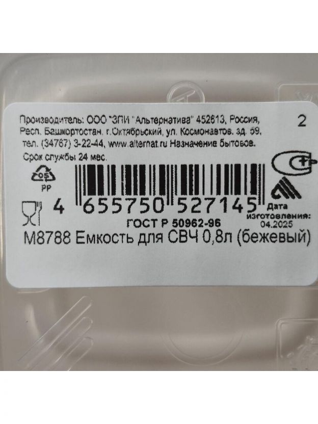 Контейнер пищевой из пластика (0.8 л) бренда «Альтернатива» — это универсальный выбор для хранения продуктов, полуфабрикатов, овощей и готовых блюд. Благодаря прочному пластику, изделие не впитывает запахи и сохраняет свежесть содержимого, а бежевый цвет гармонично впишется в любой интерьер кухни. Часто спрашивают: «Подходит ли для микроволновки?» — да, контейнер рассчитан на разогрев в СВЧ, а также выдерживает заморозку без деформации.
