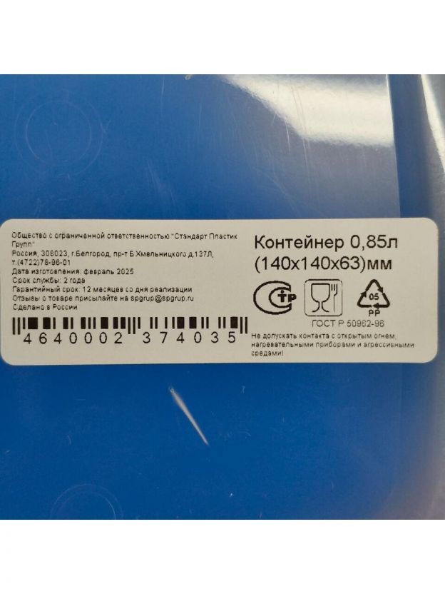 Выбирайте пластиковый контейнер 0,85 л от бренда Стандарт Пластик Групп — выгодное соотношение цены и функциональности. Закажите с доставкой и получите универсальный помощник для хранения еды, который прослужит долго.