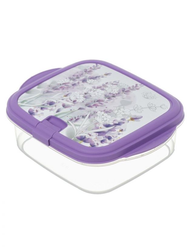 Контейнер пищевой пластик, 0.9 л, 18.6х15х6 см, квадратный, с клапаном, Полимербыт, Lavender, 439724400