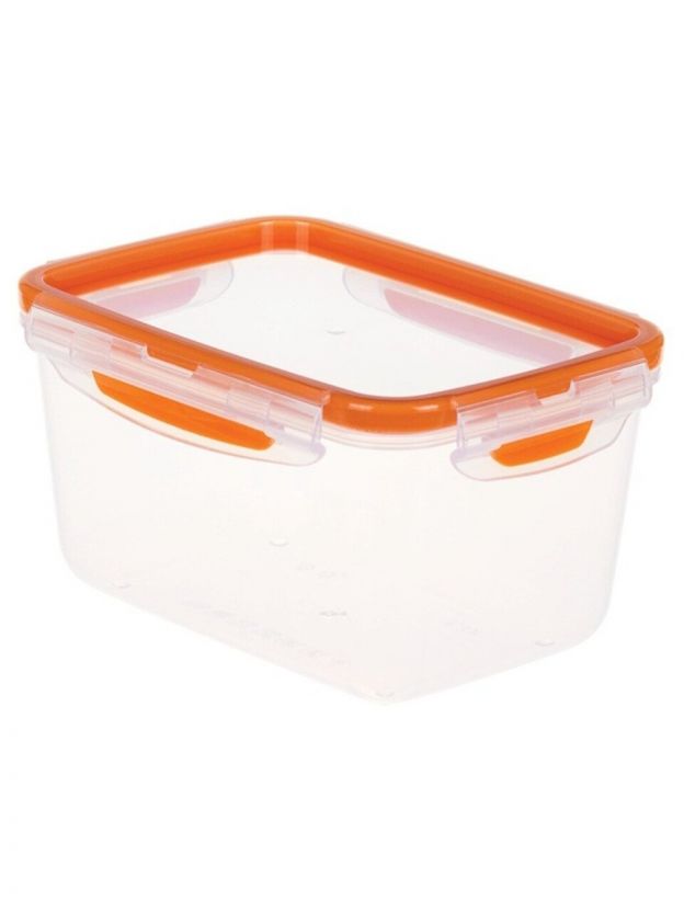 Контейнер прямоугольный, объем 1.3 литра, размеры: длина 18 см, ширина 13 см, высота 10 см. Цвет — оранжевый.