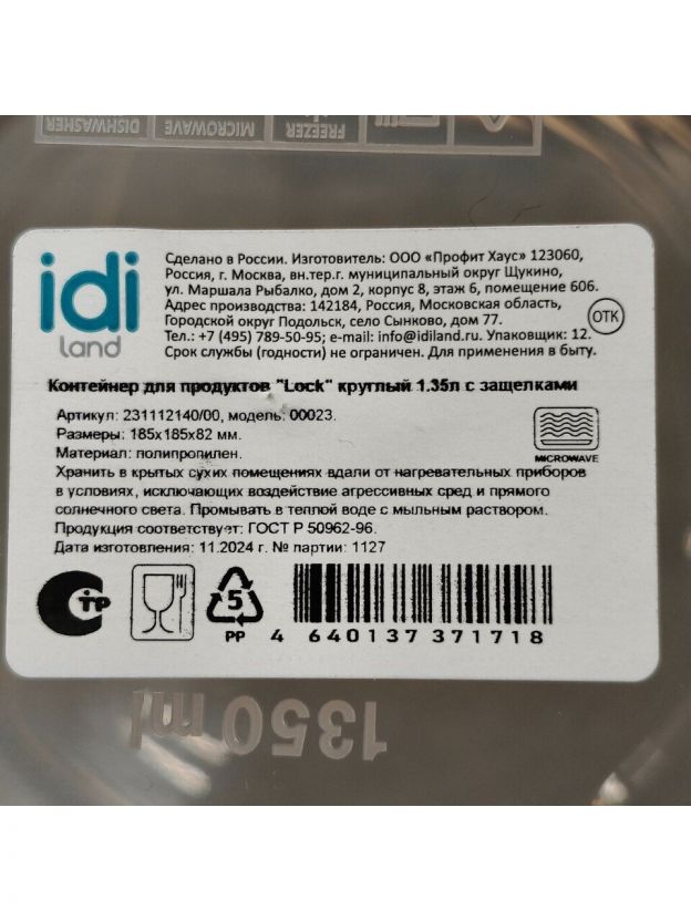 Контейнер пищевой пластик 1.35 л IDIland Lock — надежное хранение продуктов дома и на даче: герметичность, долговечность, универсальность для ваших нужд.