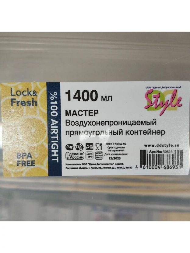 Контейнер пищевой пластик 1.4 л, прямоугольный, герметичный: свежесть продуктов до 7 дней, универсальное хранение, выгодная цена