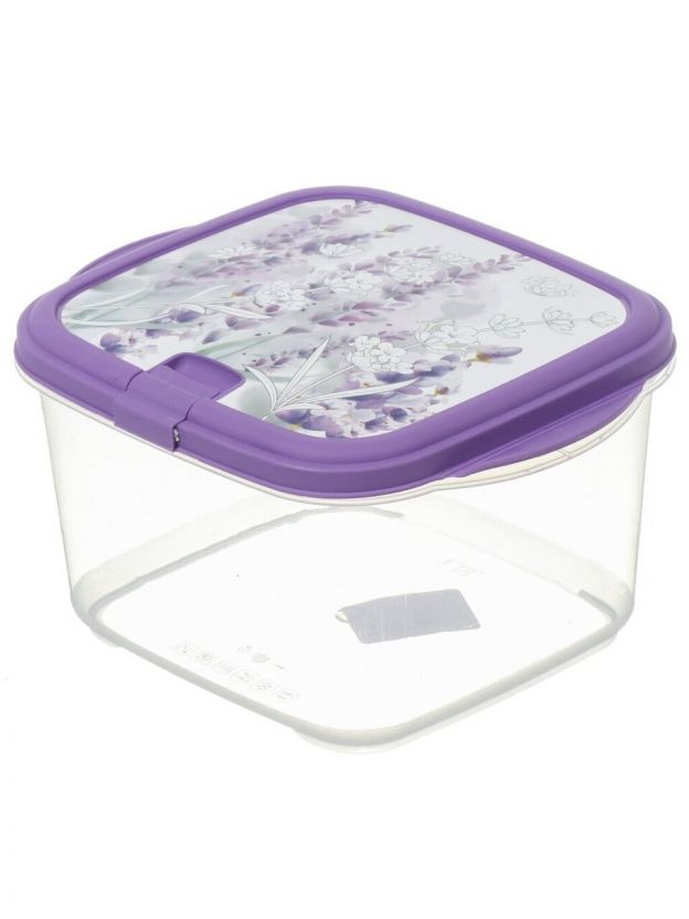 Контейнер пищевой пластик, 1.5 л, 15х15х10 см, квадратный, с клапаном, Полимербыт, Lavender, 439734400