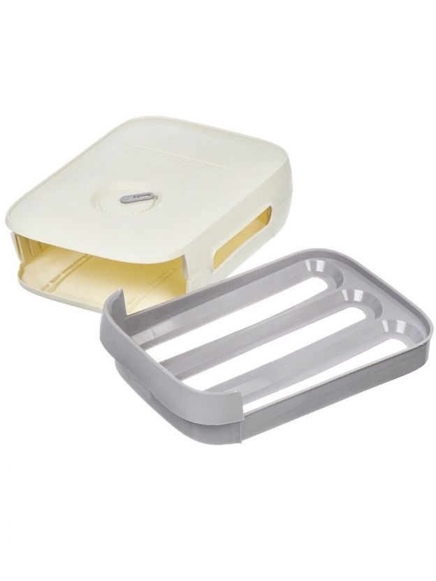 - Прочный пластик, оптимальные размеры 28x22x8 см — поместится в любой холодильник