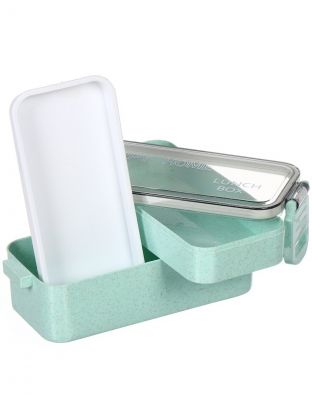 Контейнер пищевой пластик, 8х20х11 см, зеленый, прямоугольный, трехуровневый с приборами, Y4-6464