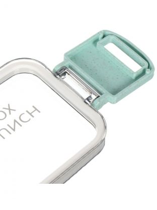 Контейнер прямоугольной формы, размеры: длина 8 см, ширина 20 см, высота 11 см. Материал — прочный пищевой пластик, крышка также пластиковая, цвет — зелёный.
