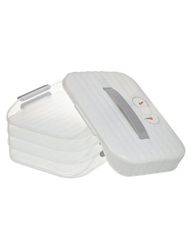 Четыре яруса позволяют хранить разные продукты отдельно, экономят место и обеспечивают быстрый доступ, а ручка облегчает переноску.