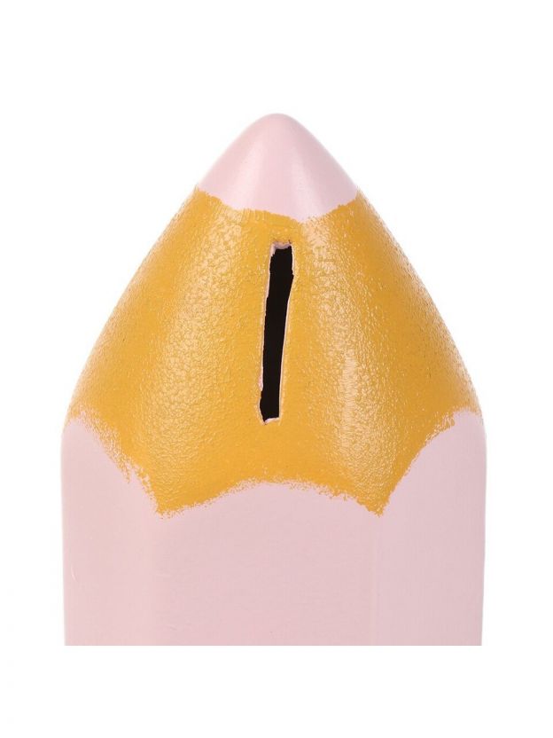• Оригинальная форма карандаша выделяет копилку среди стандартных решений — эффектный акцент для интерьера