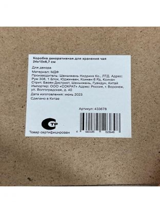 Коробка декоративная для хранения чая, МДФ, 24х15х6.7 см, Y4-6788