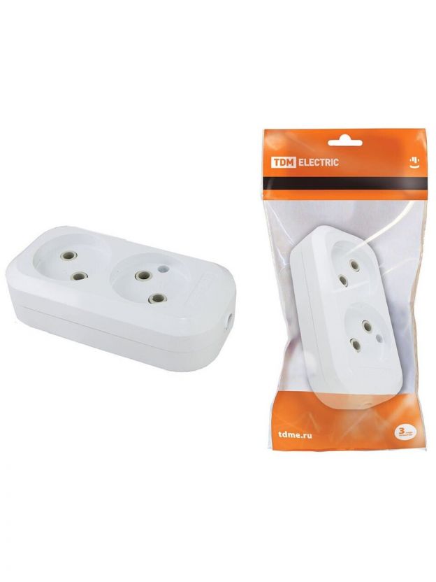 Корпус удлинителя 2 гнезда, 2 полюса, без заземления, 10 А, белый, TDM Electric, SQ1806-0012