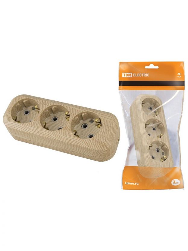 Корпус удлинителя 3 гнезда, 2 + 3, с заземлением, 16 А, сосна, TDM Electric, Эко, SQ1806-0048