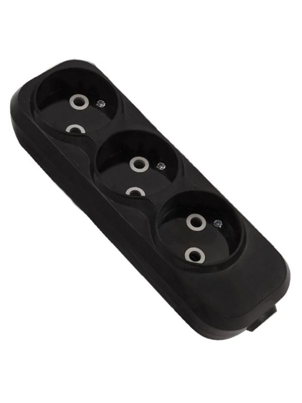Корпус удлинителя 3 гнезда, 2 полюса, без заземления, 10 А, черный, TDM Electric, Народная, SQ1806-0425