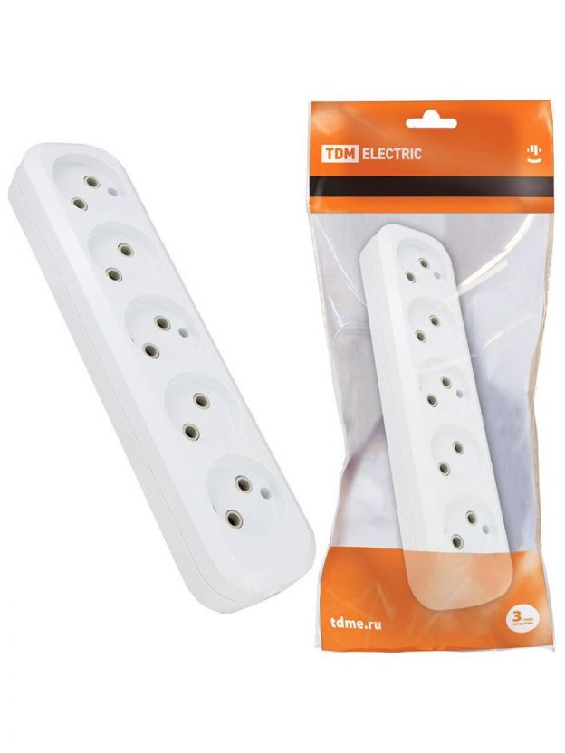 Корпус удлинителя 5 гнезд, 2 полюса, без заземления, 10 А, белый, TDM Electric, SQ1806-0034