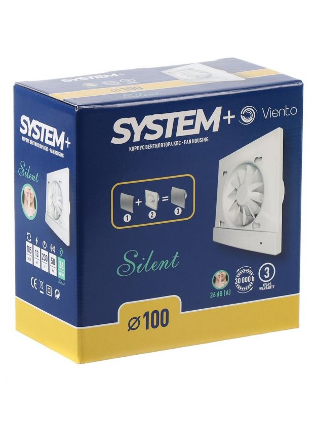 Корпус вентилятора настенный, Viento, установочный диаметр 100 мм, 13 Вт, 105 м3/ч, SYSTEM+, КВС 100СН