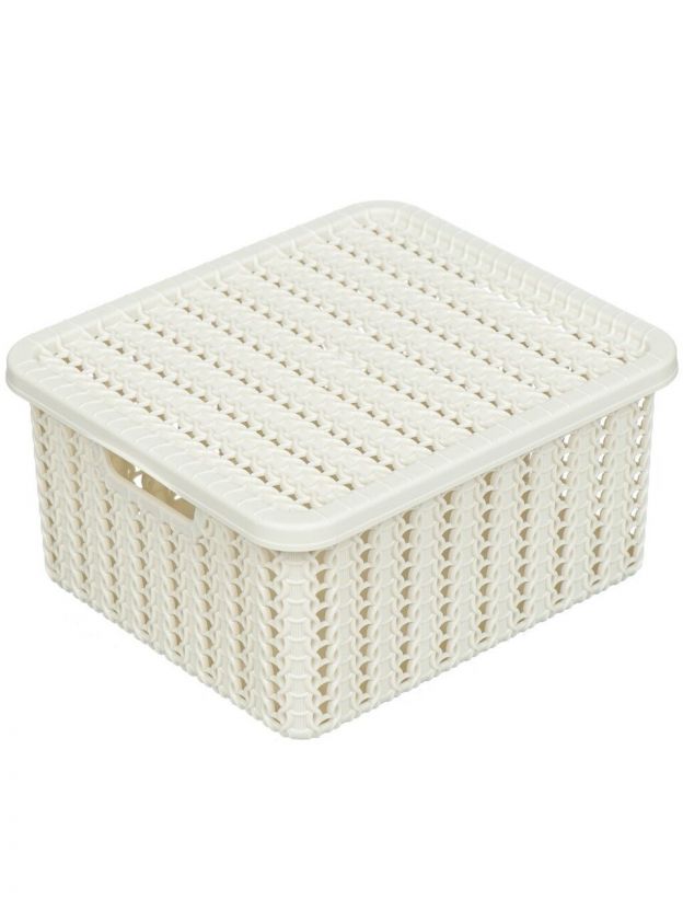 Корзина 1.5 л, прямоугольная, плетеная, пластик, белый ротанг, с крышкой, Idea, Вязание, М2368