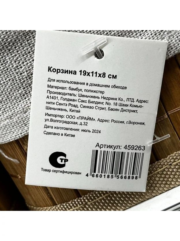 Корзина 19х11х8 см, прямоугольная, плетеная, бежевая, Y4-7915