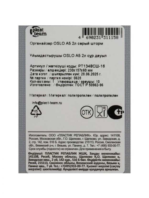 Ищете, какую корзину выбрать для хранения мелких вещей? Plast team Oslo — это практичное решение для организации пространства. Благодаря компактным размерам и лаконичному дизайну, корзина подходит для кухни, ванной, детской, гардеробной и рабочего стола. Пластик устойчив к влаге, не впитывает запахи и легко очищается — это особенно важно для ежедневного использования.