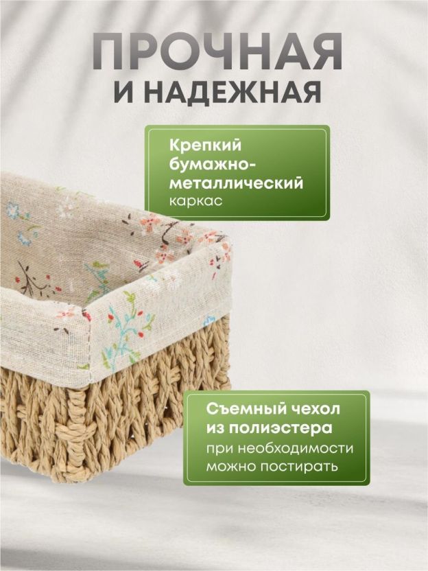 Плетеная корзина - классический элемент декора, который органично дополнит любой интерьер. Она отлично подойдет для хранения продуктов, канцелярских принадлежностей, предметов хобби и творчества.