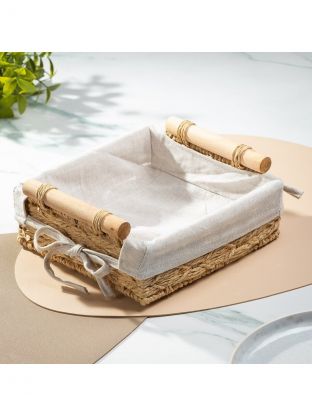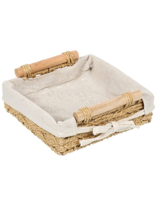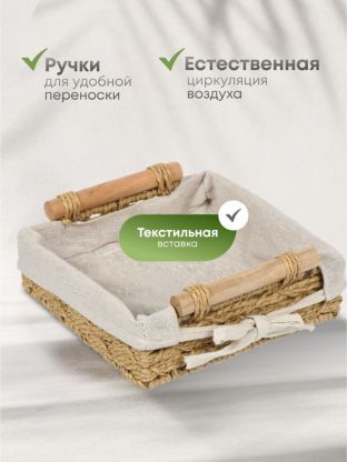 Корзина 22.5х21.5х9 см, квадратная, плетеная, бежевая, с ручками, Y4-7646