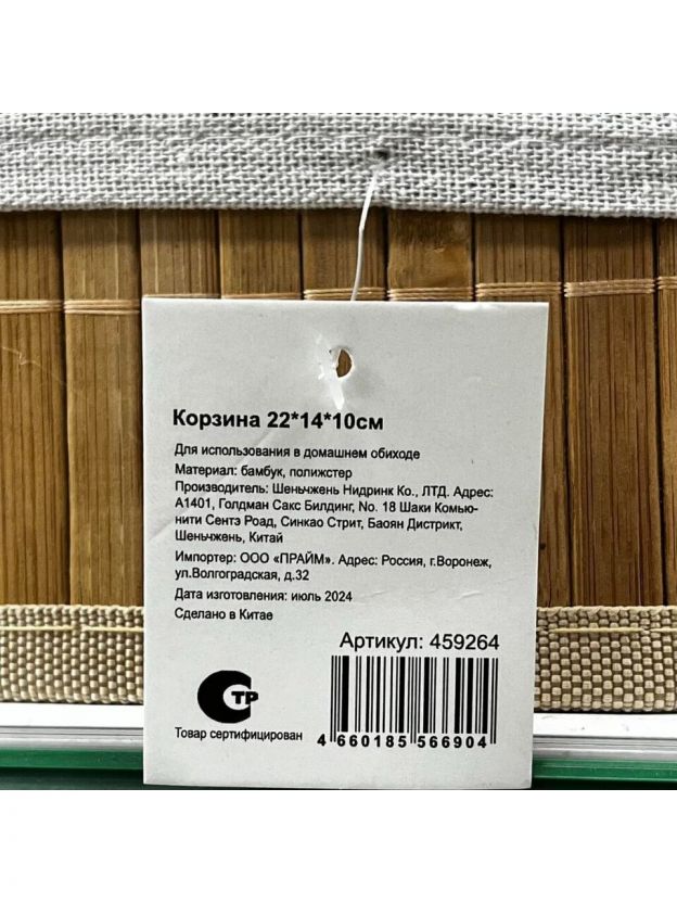 Корзина 22х14х10 см, прямоугольная, плетеная, бежевая, Y4-7916