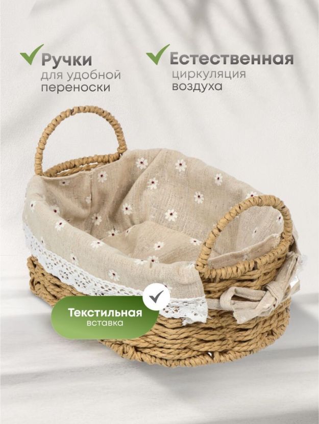 Корзина 26х17х9 см, овальная, плетеная, бежевая, с ручками, Y4-7648