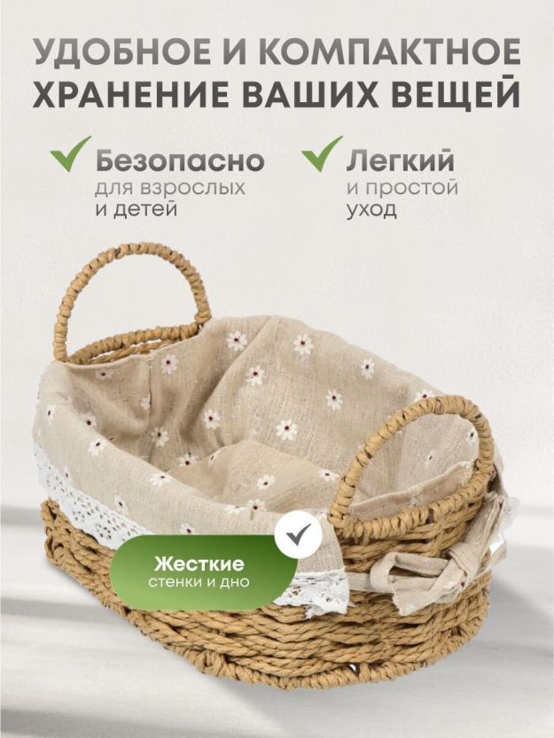 Плетеная корзина - классический элемент декора, который органично дополнит любой интерьер. Она отлично подойдет для хранения продуктов, канцелярских принадлежностей, предметов хобби и творчества.