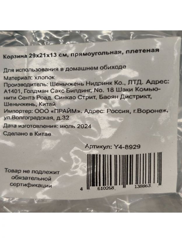 Ищете стильное и практичное решение для хранения? Плетеная корзина 29х21х13 см - идеальный выбор! Эта прямоугольная корзина станет не только функциональным, но и декоративным элементом вашего интерьера. Изготовлена из качественных материалов, она украсит любое пространство и поможет организовать порядок. Подходит для хранения мелочей, аксессуаров или текстиля.